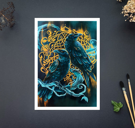 Kunstdruck Raben, Odins Raben Hugin und Munin