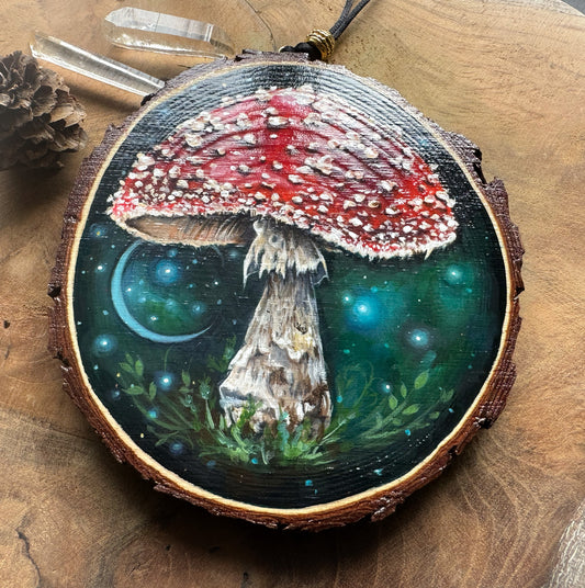 AusverkauftHandbemalte Holzscheibe Fliegenpilz