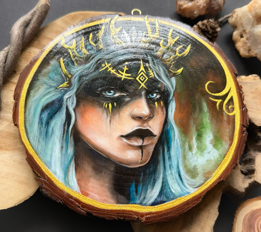 AusverkauftYlva - handbemalte Holzscheibe, Viking, Hexen