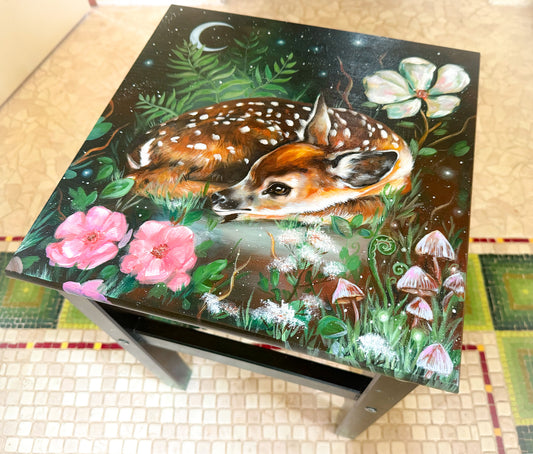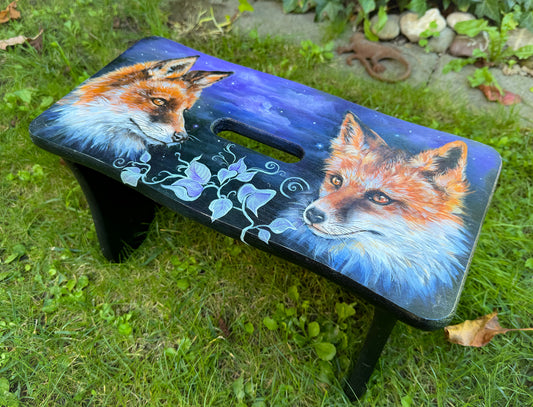Handbemalter Holzschemel mit Fuchs-Motiv – einzigartiger kleiner Hocker