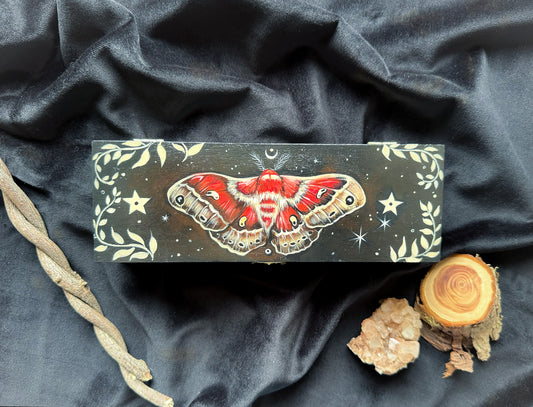 AusverkauftHolzschatulle handbemalt, Motte, Hexen, Mystik