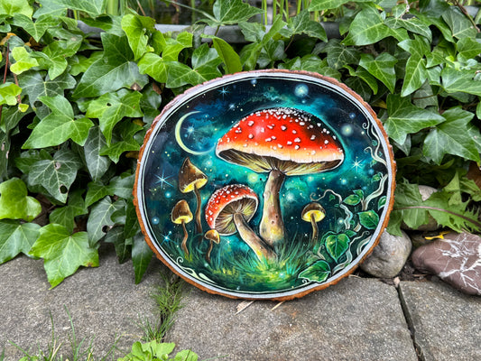 AusverkauftHandbemalte Holzscheibe magische Fliegenpilze