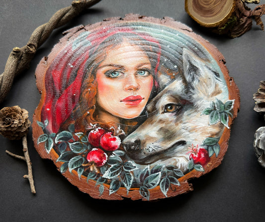AusverkauftHandbemalte Holzscheibe Rotkäppchen