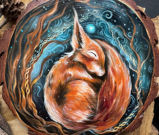 AusverkauftHandbemalte Holzscheibe schlafendes Eichhörnchen
