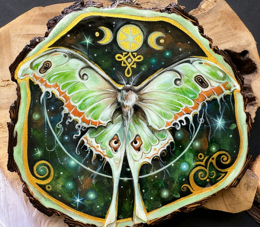 AusverkauftMotte, Schmetterling, handbemalte Holzscheibe