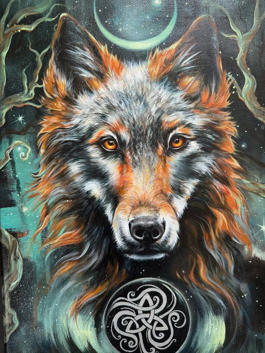 Originalmalerei Wolf Nachtsänger